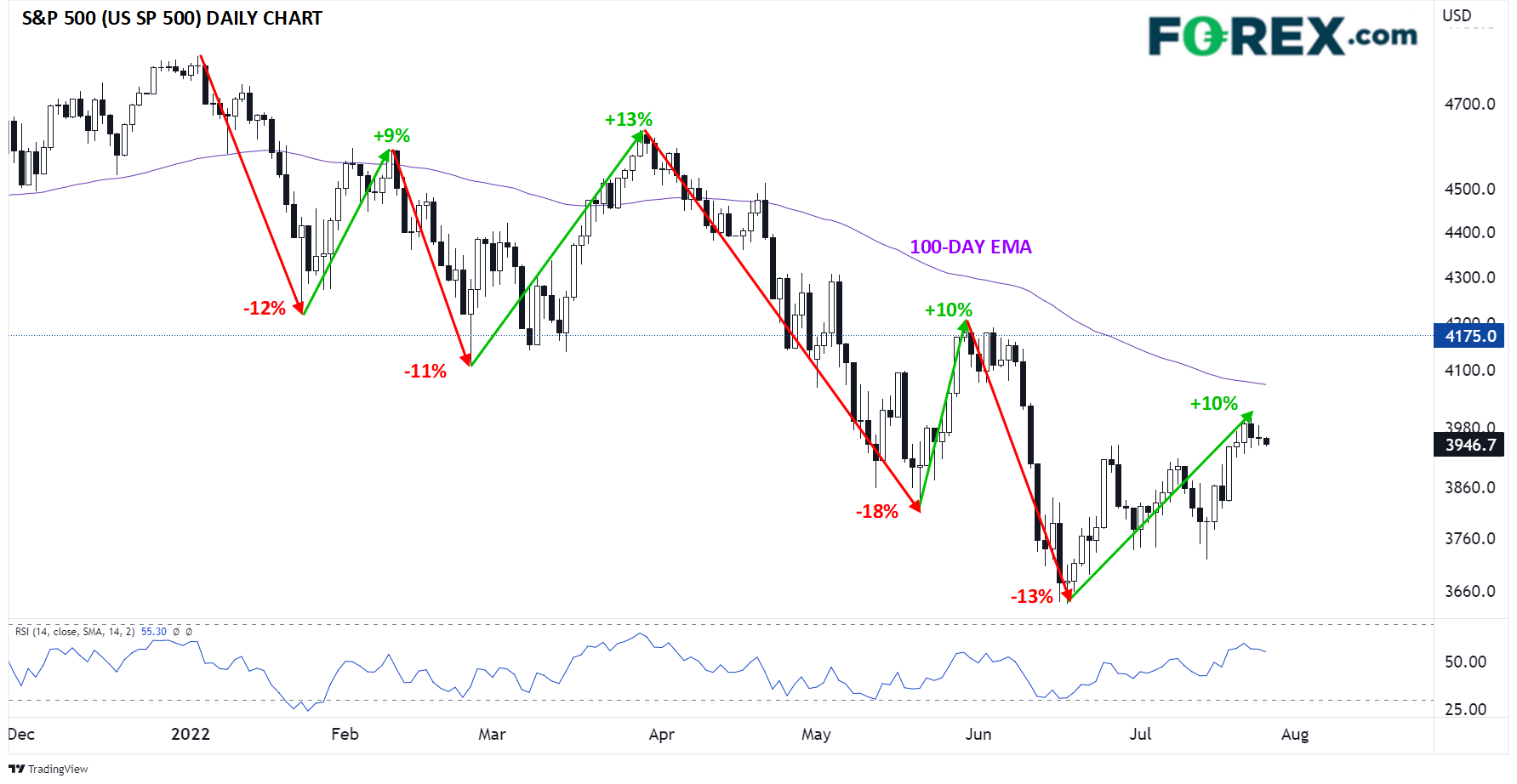 读者可能注意到了,过去一个月乐观的情绪较为明显。在美联储6月中旬出乎市场意料加息75个基点,并且暗示今后加息幅度可能进一步扩大的作用下,交易者的绝望心理达到顶峰。