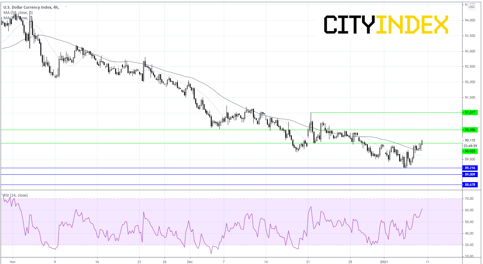 美元指数已自89.20这个多年新低回升,并朝着心理关口90.00迈进。