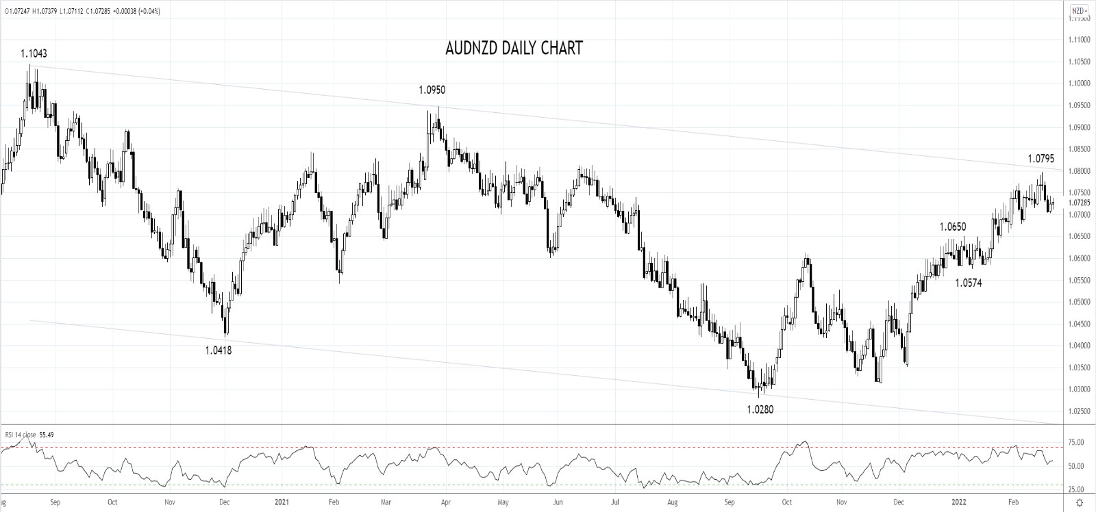 加息50个基点的可能性不容忽视;但随着房地产市场走软同时奥密克戎病例开始激增,预计联储将选择加息25个基点。今天上午,俄罗斯决定向乌克兰东部两个分离主义共和国派遣“维和”部队。此举震动市场,新西兰联储25个基点的保守加息也因此几近板上钉钉。