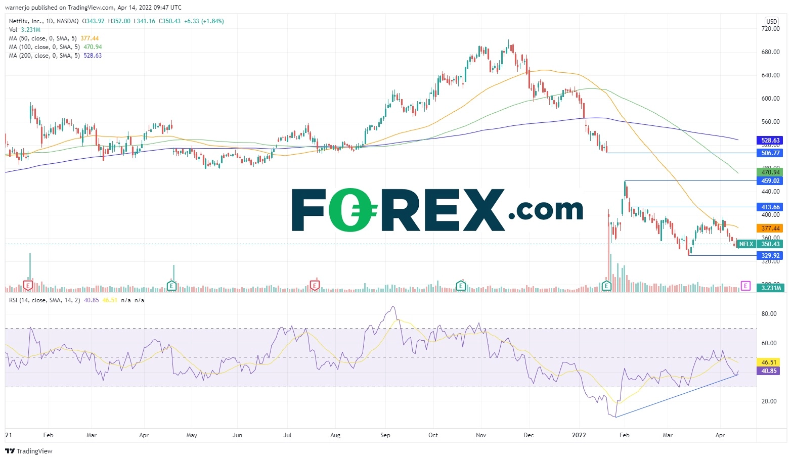 如果事实确实如此,奈飞股价有望实现逾4个月首度在目前落于377的50天简单移动均线上方持续上涨,上看2月阻力412,然后着力填补1月跳空低开缺口。值得注意的是,46家经纪商预测奈飞股价未来一年里可以填补该缺口并到达504。