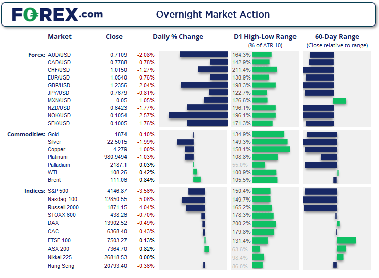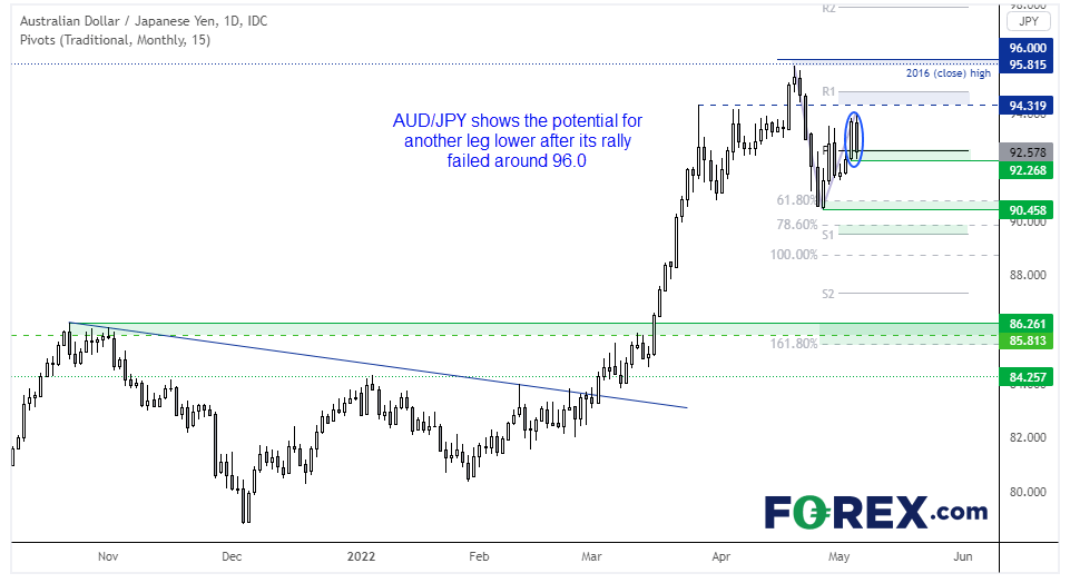 交易者认为,美联储或许被迫放弃在昨天FOMC会议上的立场,采取更积极的加息行动。美债收益率和美元因此双双上扬,而纳斯达克100指数遭遇2020年9月以来最大跌幅 – 超过5%,将本周早些时候的涨幅回吐殆尽。可以说ASX200指数科技股今天可能遭遇挑战,而昨天刚刚斩获逾10年最大涨幅的澳元抹去了当天的涨幅,随后经受14个月最大跌幅。这些都是波动性的最佳体现,而随着美联储即将从6月开始量化紧缩,今后波动可能是常态,我们需要适应。经历了过去48小时的震荡之后,很多交易者可能在周末到来前择机减少风险头寸 – 或以避险资产对冲,或了结持有现金。这本身就足以造成更加剧烈的波动,交易者最好灵活应对。
