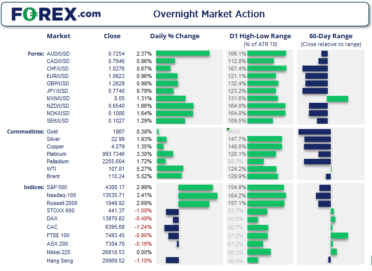 这被视为股市的利好,美股在纳斯达克100指数的带领下反弹。纳指上涨3.5%,伴随着高于平均值的成交量,本周有望收出看涨吞噬K线,道指和标普500指数的情况与之相似。标普500指数有94%的个股当天上涨,并且11个板块悉数走高,领涨的是能源板块。