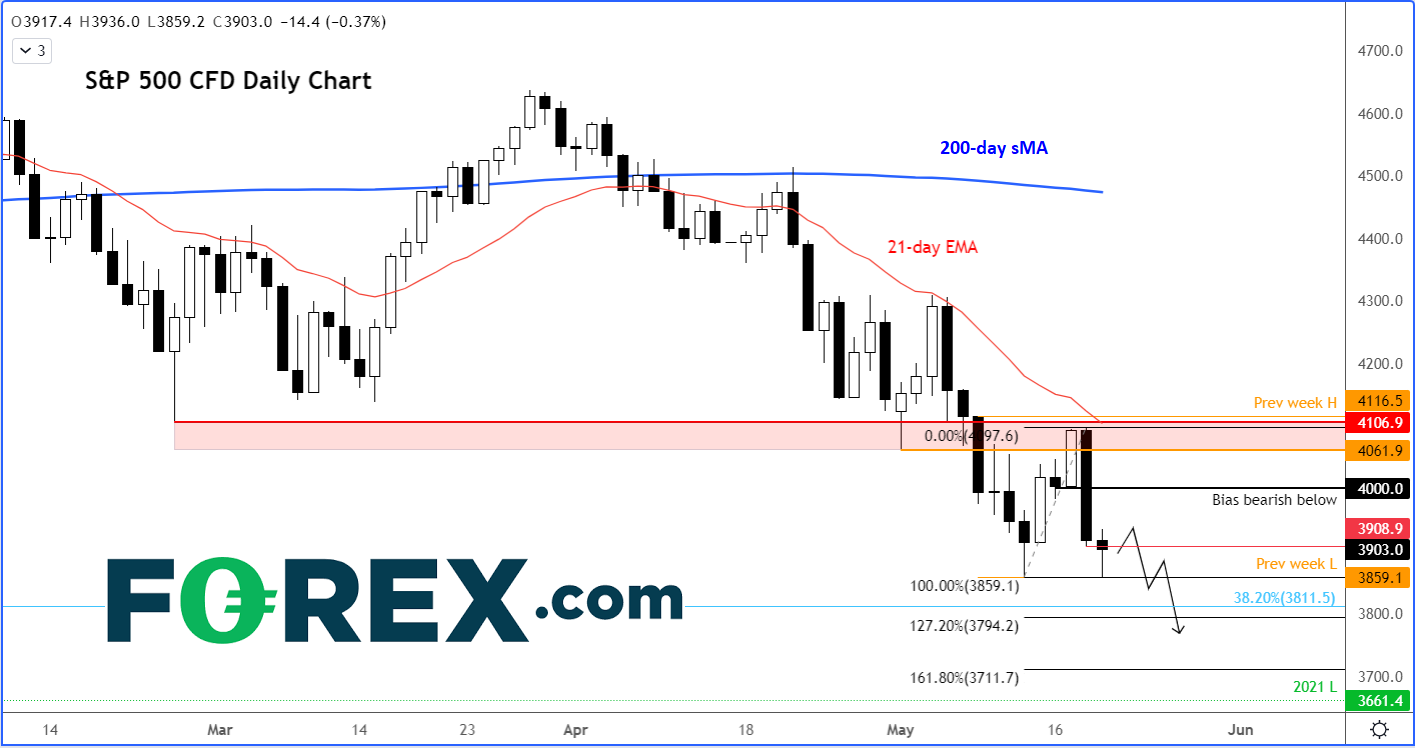 技术面看,抛压似乎也没有结束,即便标普500指数业已脱离低点。事实上,股指没有先行攻克上周低点3859即反弹很让人怀疑。可能有些人会觉得这是潜在双底,但在我看来这是熊市中经常出现的典型的多头陷阱。如果没有下破3859并走向新低,那太让人吃惊了。毕竟,我们处于熊市中。