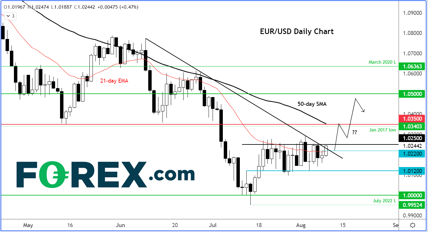 当然,欧元/美元的长线趋势依然向下,能否在无数次冲击后最终站上1.0250关键阻力位,也有待观察。但盘整时间长达四周的事实,基本上意味着下跌动能的丧失。欧元/美元测试下跌趋势线上方的空间,后市有机会上攻1.0350吗?