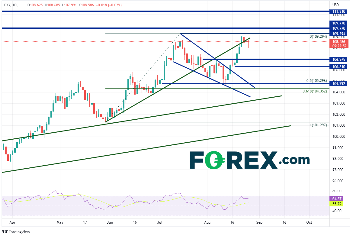 二季度GDP数据陈旧,但其被上修,尤其是物价指数分项指标被上修,可能需要鲍威尔周五讲话时给予解释。在周五年会召开之前,交易者小心谨慎。一旦鲍威尔开始讲话,美元指数或出现震荡。