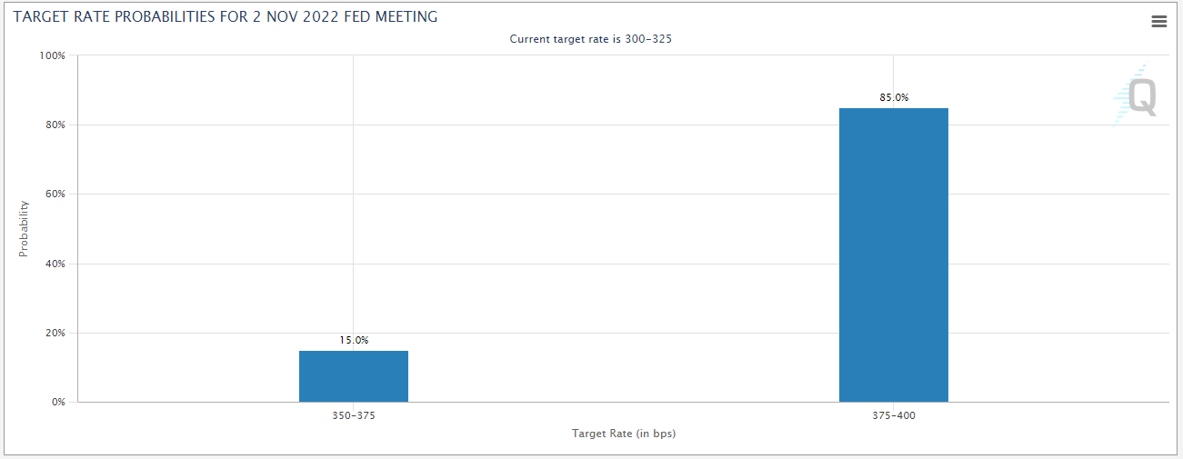 本月FOMC会议至关重要。尽管加息75个基点显而易见,但市场密切关注会后声明和新闻发布会,不会放过任何美联储暗示会在未来数月放缓加息步伐的信号。