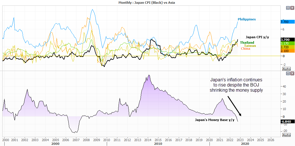 有趣的是,相比于其他西方国家和亚洲贸易伙伴,日本的物价上涨得相当缓慢,但是日本的货币基数却下跌了6.5%,创下2007年以来最大跌幅。