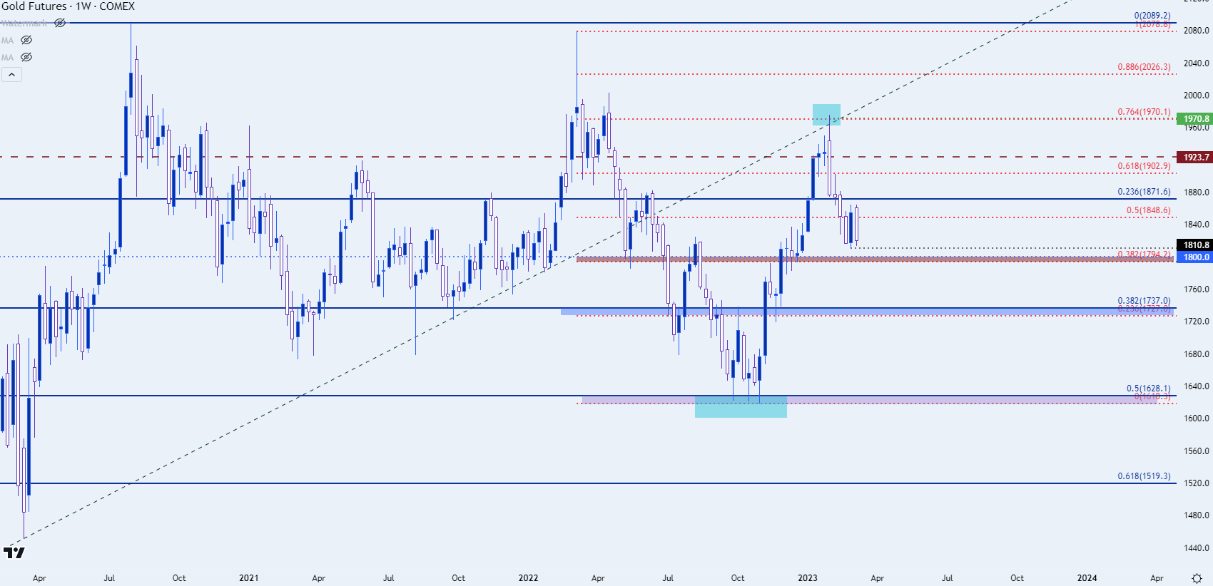 图表由James Stanley准备,Tradingview上的黄金