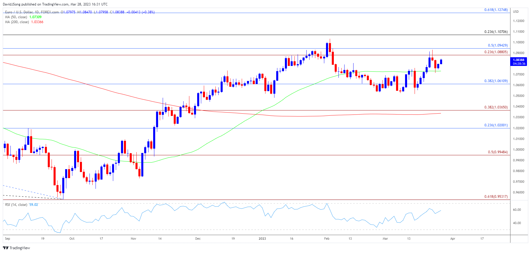 话虽如此,对迫在眉睫的政策变化的猜测可能会在5月3日联邦公开市场委员会(FOMC)下一次利率决议之前给美元带来阻力,欧元/美元有望测试月内高点(1.0930),延续从50日均线开始(1.0731)的反弹。