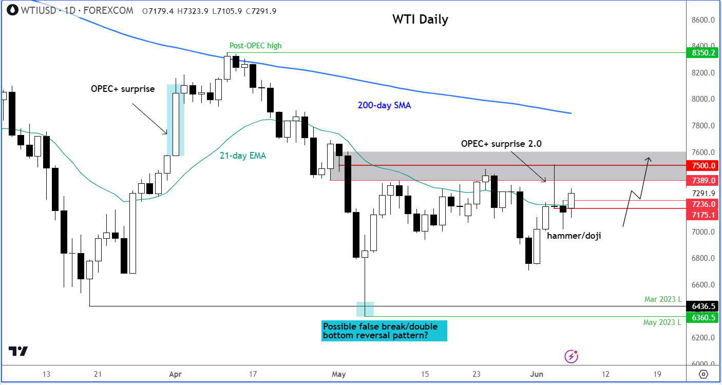 多头现在希望看到WTI收于周二高点上方,因为这将进一步挤压空头,他们在周一形成“墓碑十字星”后选择卖出石油。如果发生这种情况,我们可能会看到油价在本周迅速升至75.00美元上方的新高,强平那些被套的空头仓位。