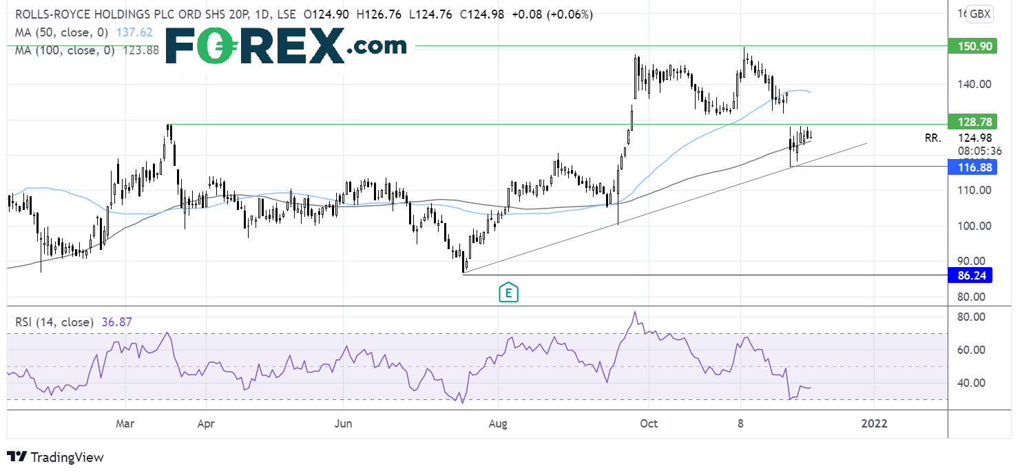 与此同时,买家则希望股价上穿129便士和131便士(10月低点),然后上看50均线137便士。