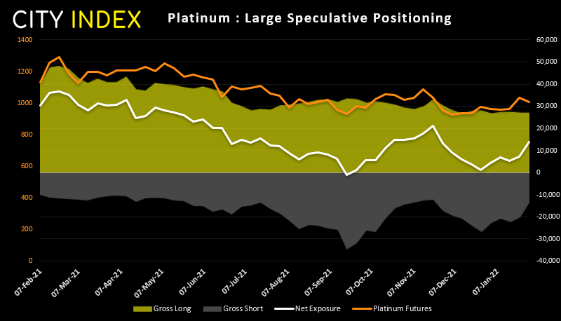 - 铂金期货净多头头寸增加近一倍,升至10周以来最看涨水平