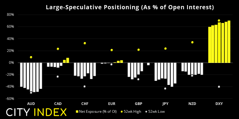 纽元人气仍然低迷,净空头敞口升至2020年6月以来最看跌水平。但在总空头升至最高水平同时,总多头规模也有所增加。看起来,投资者要么在对冲押注,要么在低吸。鉴于新西兰联储态度强硬,通胀持续飙升并远超联储目标,我们倾向于后者。
